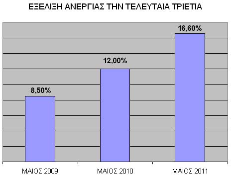 Οι άνεργοι αυξήθηκαν κατά 220.534 άτομα σε σχέση με το Μάιο του 2010 (αύξηση 36,6%) και κατά 36.260 άτομα σε σχέση με τον Απρίλιο του 2011 (αύξηση 4,6%).